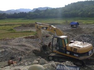 Salah satu kegiatan pertambangan di Sumatera Barat yang berlangsung persis di atas areal lahan pertanian.