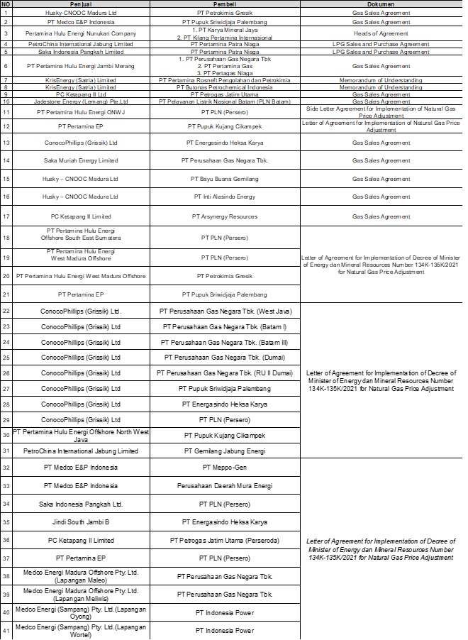 Daftar Penandatanganan Kesepakatan Komersial Gas
