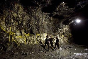 People look over an outcropping of a copper and nickel deposits 2750 feet below the surface at the Podolsky Mine, owned by the FNX Mining Company Inc., in the Sudbury Basin, in Sudbury, Ontario, Canada, on Tuesday, June 10, 2008. FNX Mining Co. and Kadywood Capital Corp. agreed to form a venture named Gold Wheaton Corp. in a C$400 million transaction. Photographer: Norm Betts/Bloomberg News
