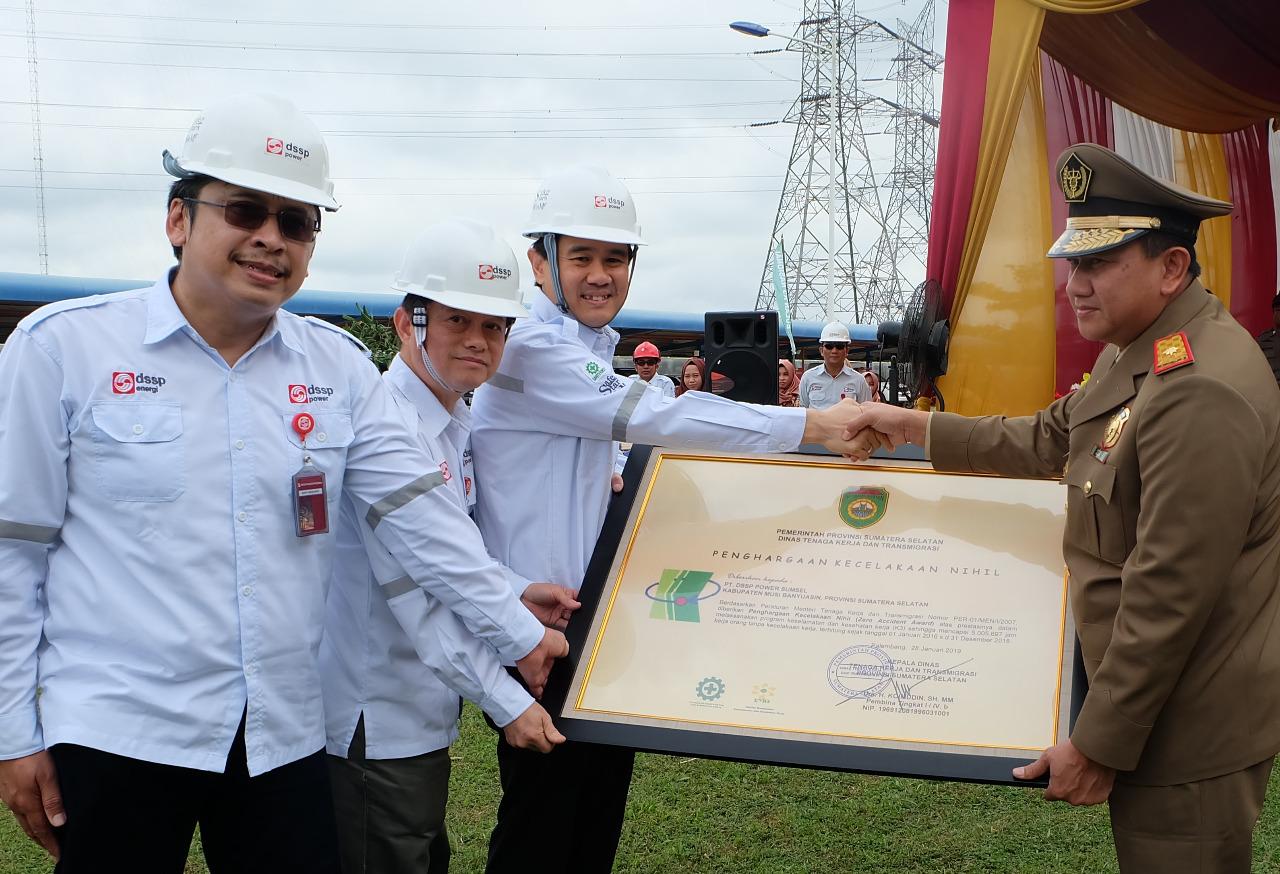 Atas kerja keras para karyawan dan kontraktor dalam mengelola K3 di lingkungan perusahaan tersebut, DSSP Power Sumsel telah menerima penghargaan Lima Juta Jam Kerja Tanpa LTI (Lost Time Incident) dari Dinas Tenaga Kerja dan Transmigrasi Propinsi Sumatera Selatan. Penyerahan penghargaan dilakukan Senin (28/1) di Desa Sindang Marga, Kecamatan Bayung Lencir, Musi Banyuasin. Hadir pada acara tersebut Kepala Dinas Tenaga Kerja dan Transmigrasi Sumsel, Perwakilan dari PT PLN (Persero), CEO bisnis energi PT Dian Swastatika Sentosa Tbk, Perwakilan Pemerintah Kabupaten Musi Banyuasin, Muspika, serta kepala-kepala desa setempat.