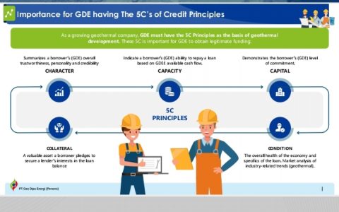 Geo Dipa Energi antara lain, pertama karakter yang menunjukan secara umum kejujuran, kepribadian, dan kredibilitas dari peminjam. Kedua, kapasitas yang menunjukkan kemampuan peminjam untuk membayar kembali pinjaman berdasarkan arus kas yang tersedia. Ketiga, modal yang menunjukkan tingkat komitmen dari peminjam. Keempat, kondisi kesehatan ekonomi secara keseluruhan dan spesifikasi pinjaman. Analisis pasar tren terkait industri (Geothermal). Dan kelima, jaminan aset berharga yang dijanjikan peminjam untuk mengamankan kepentingan pemberi pinjaman dalam saldo pinjaman.