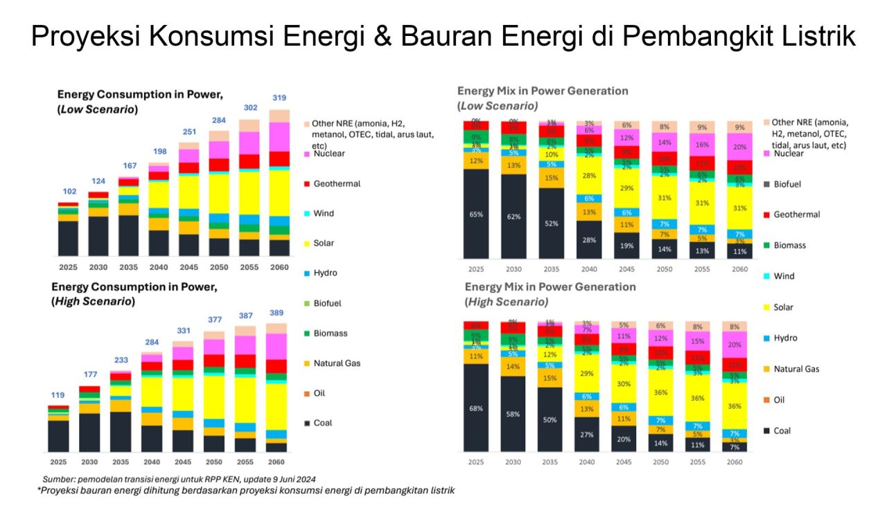INDONESIA jadi salah satu negara yang disorot dunia lantaran punya ambisi besar Net Zero Emissions (NZE) pada tahun 2060. itu tentu tidak lepas dari kondisi bauran energi nasional Indonesia saat ini dimana 60% justru masih didominasi bahan bakar fosil khususnya batu bara. Target Rencana Umum Energi Nasional (RUEN) yang mematok bauran Energi Baru Terbarukan mencapai 23% pada tahun 2025 hampir dipastikan tidak akan mencapai target karena hingga akhir tahun 2023 lalu berdasarkan data pemerintah realisasi pemanfaatan EBT baru mencapai 13,3%.