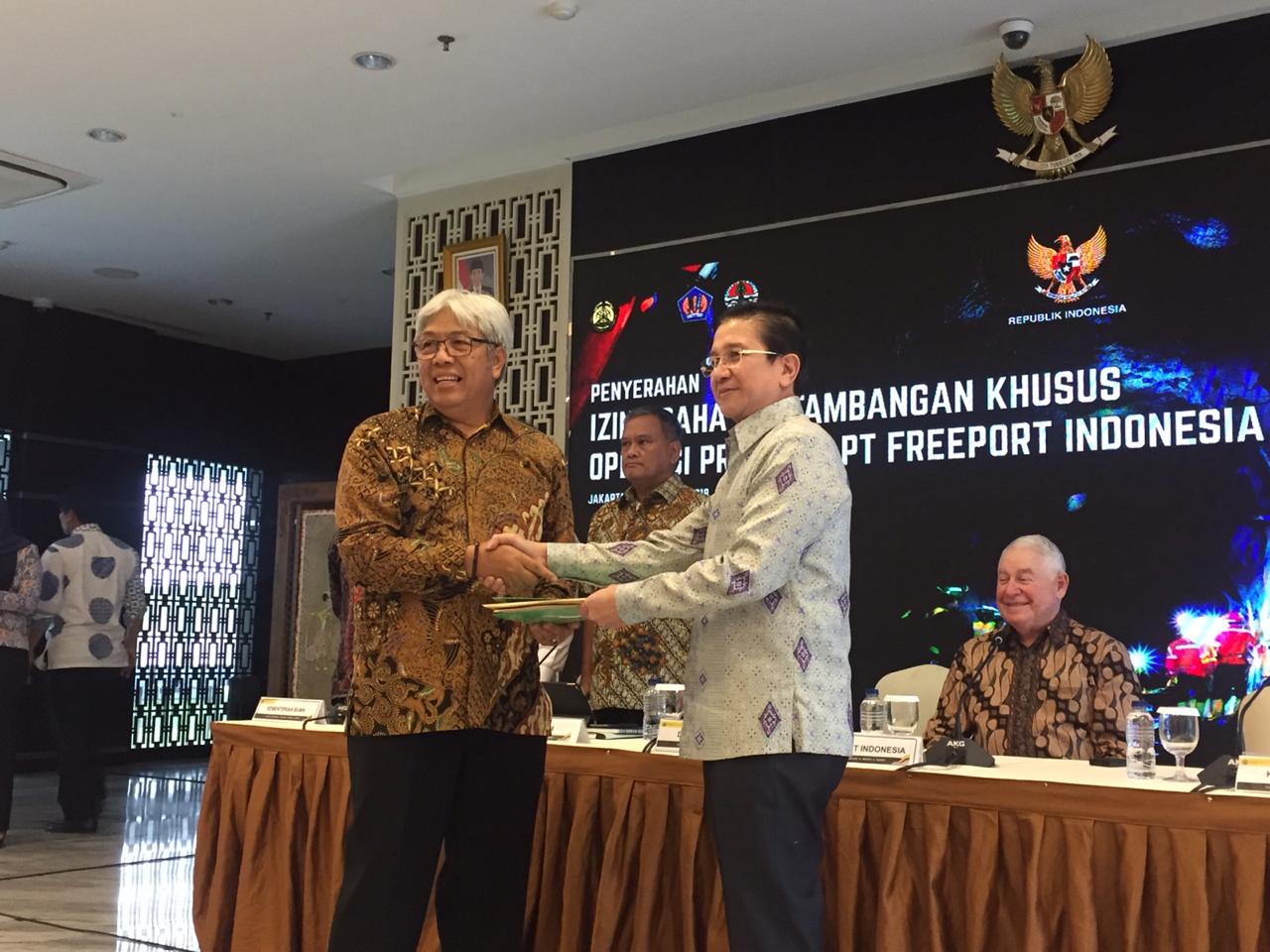 Penyerahan IUPK dilakukan Bambang Gatot Ariyono, Direktur Jenderal Mineral dan Batubara Kementerian ESDM kepada Tony dan disaksikan Ego Syahrial, Sekretaris Jenderal Kementerian ESDM, Fajar Harry Sampurno, Deputi Kementerian BUMN Bidang Usaha Pertambangan, Industri Strategis, dan Media, Budi Gunadi Sadikin, Direktur Utama PT Indonesia Asahan Aluminium (Persero) atau Inalum dan Richard C Adkerson, CEO Freeport-McMoRan Inc.