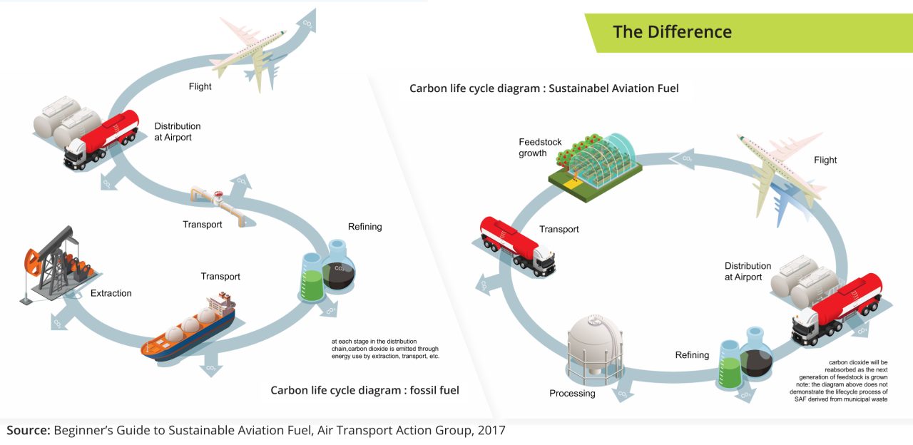 Perbedaan siklus penggunaan bahan bakar avtur komvensional dengan Bioavtur. (Sumber : Pertamina)