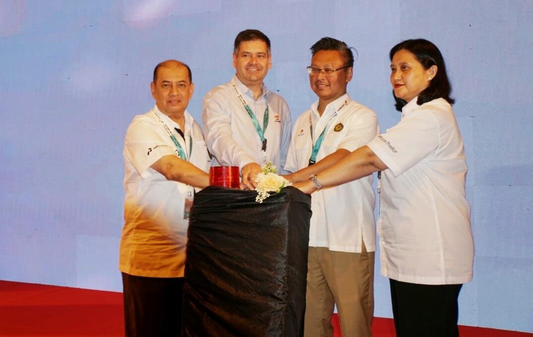Ekariza, Direktur Operasi dan Produksi PHE (kiri), Greg Aolman, Dirut Repsol, Jafee Suardin, Deputi SKK Migas dan Meidawati, Dirut PHE saat seremoni Alih Kelola Blok Jambi Merang, Sabtu (9/2),(Foto/Dunia-Energi/Tatan Agus RST)