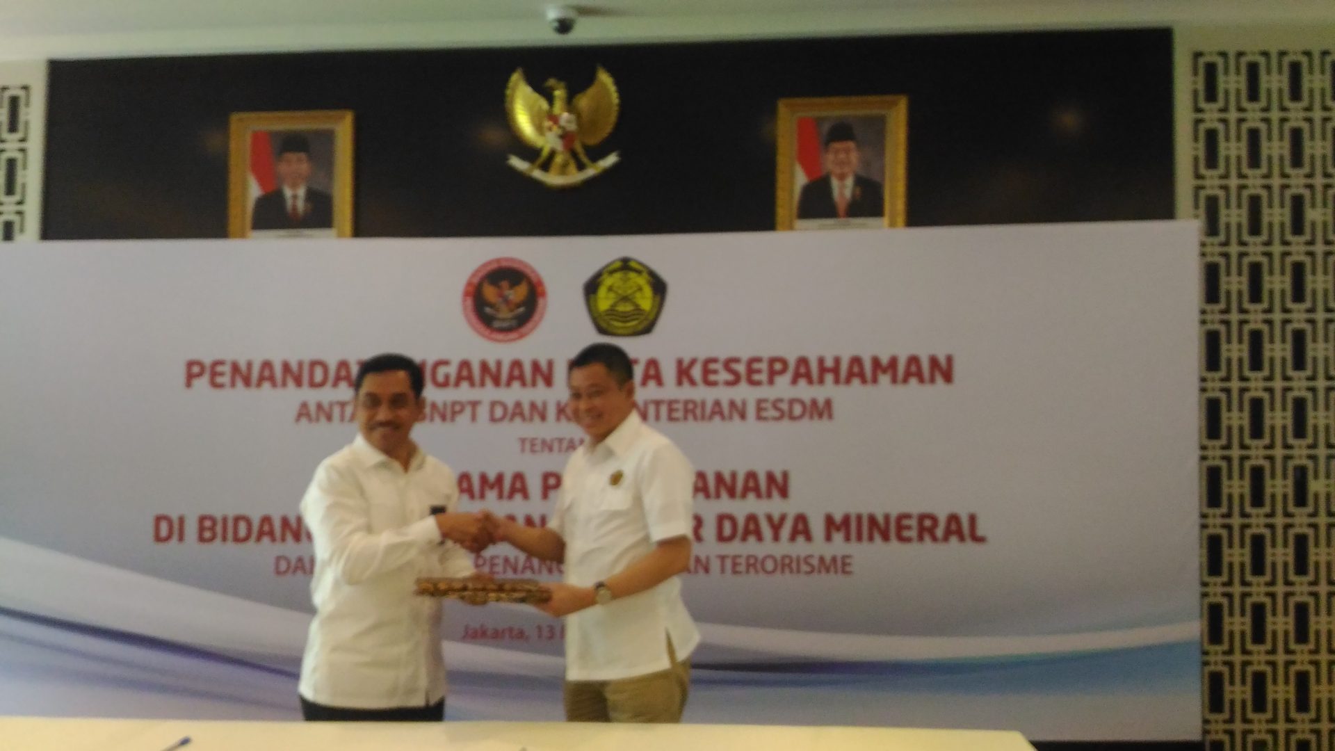 “Perjanjian kerja sama untuk menjaga obyek vital nasional, khususnya yang bisa mempengaruhi hajat hidup orang banyak. Bidang kelistrikan, bidang energi, bidang hulu migas, dan pertambangan,” kata Jonan usai mendatangani kerja sama dengan BNPT di Kantor Kementerian ESDM, Senin (13/3).