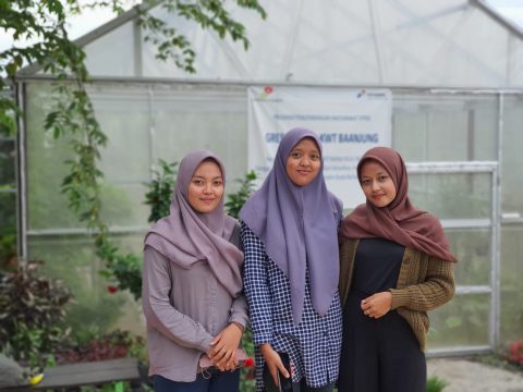 Fatimah dan dua temannya sebagai pengelola Tani Digital yang membantu petani memasarkan produk kepada konsumen. Penjualan secara pre-order buah-buahan dan sayuran organik Petani Maju 4.0 binaan PHM mencapai pusat kota Balikpapan. (foto: dokumentasi PHE)