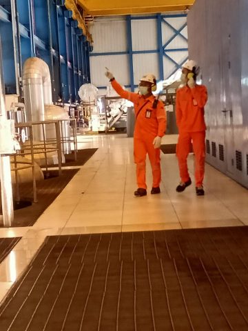 Karyawan PLTU Indramayu mengecek operasi turbin dan boiler pembangkit. (foto: dudi rahman/dunia-energi)