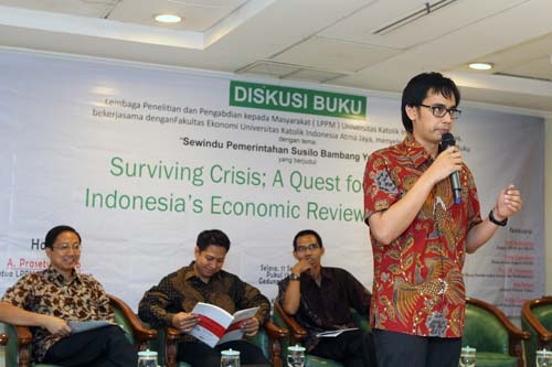 Firlie Ganinduto saat menjadi pembicara dalam Diskusi Buku “Surviving Crisis; A Quest for Prosperity, Indonesia’s Economic Review”.