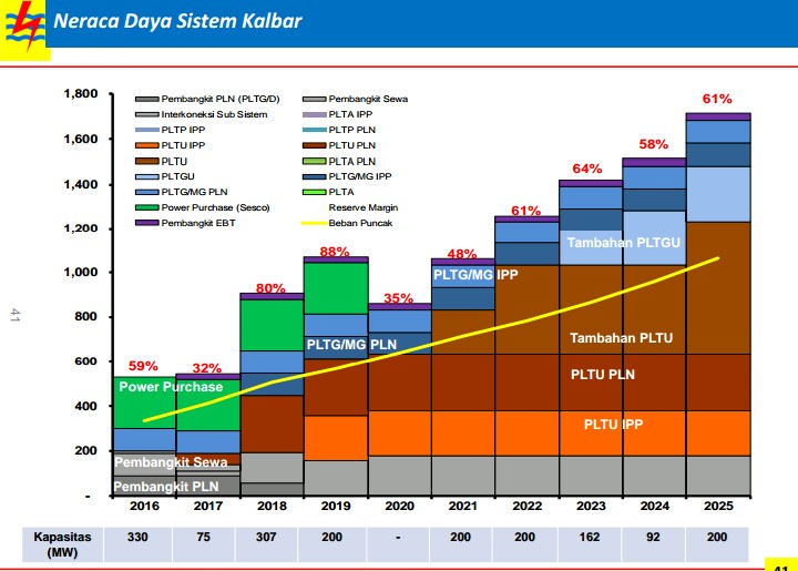 Di Kalimantan Barat terdapat enam proyek pembangunan PLTU, yaitu PLTU 1 Kalbar, Parit Baru (2x50MW); PLTU 2 Kalbar, Bengkayang (2×27,5 MW); PLTU 3 Kalbar, Bengkayang (2×55 MW), PLTU Sanggau (2x7MW); PLTU Sintang (2×7 MW), dan PLTU Ketapang (2×10 MW). Dari keenam PLTU tersebut, hanya PLTU Sanggau yang telah beroperasi.