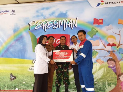 Peresmian Pojok Baca di SDN 01 Ramba yang difasilitasi Pertamina EP Asset 1 Ramba Field.