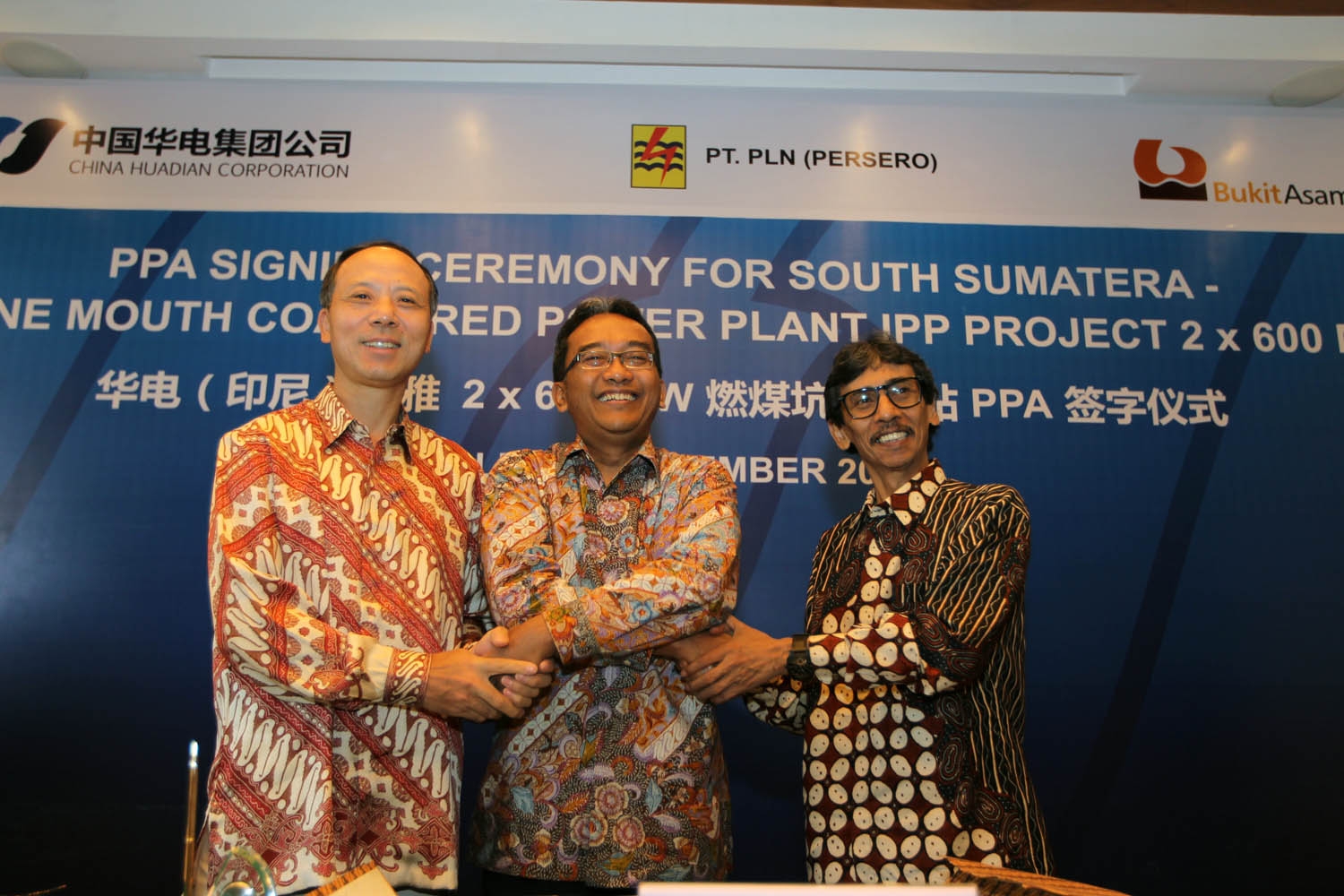 Power Purchase Agreement (PPA) PLTU ini sendiri sudah diteken di Denpasar, Bali pada Senin, 17 September 2012, antara Direktur Utama PLN, Nur Pamudji, Direktur Utama PTBA, Milawarma dan Direktur Utama China Huadian Corporation, Cheng Nangao. Hadir pula dalam kesempatan itu, Direktur Pengadaan Strategis PLN, Bagio Riawan dan Direktur Utama Huadian Bukit Asam Power, Zhao Longjun.