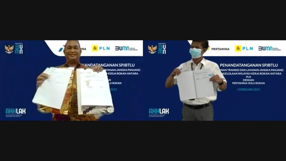 Penandatanganan dilakukan secara daring oleh General Manager PLN Unit Induk Wilayah Riau dan Kepulauan Riau, Dispriansyah bersama Presiden Direktur Pertamina Hulu Rokan, Yudantoro serta disaksikan Kepala Divisi Pengelolaan Aset SKK Migas, Achmad Riad, Direktur Bisnis Regional Sumatera dan Kalimantan PLN, Wiluyo Kusdwiharto dan Direktur Utama Pertamina Hulu Energi, Budiman Parhusip secara virtual pada Senin (1/2).