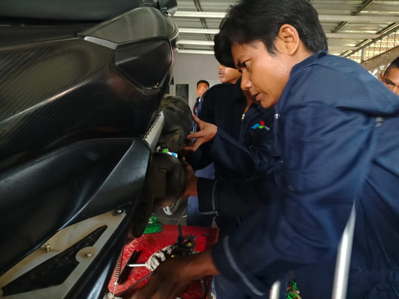 Dede Kurniawan saat sedang melakukan perbaikan motor di bengkel Inklusi (Foto/Dok/Dunia Energi)