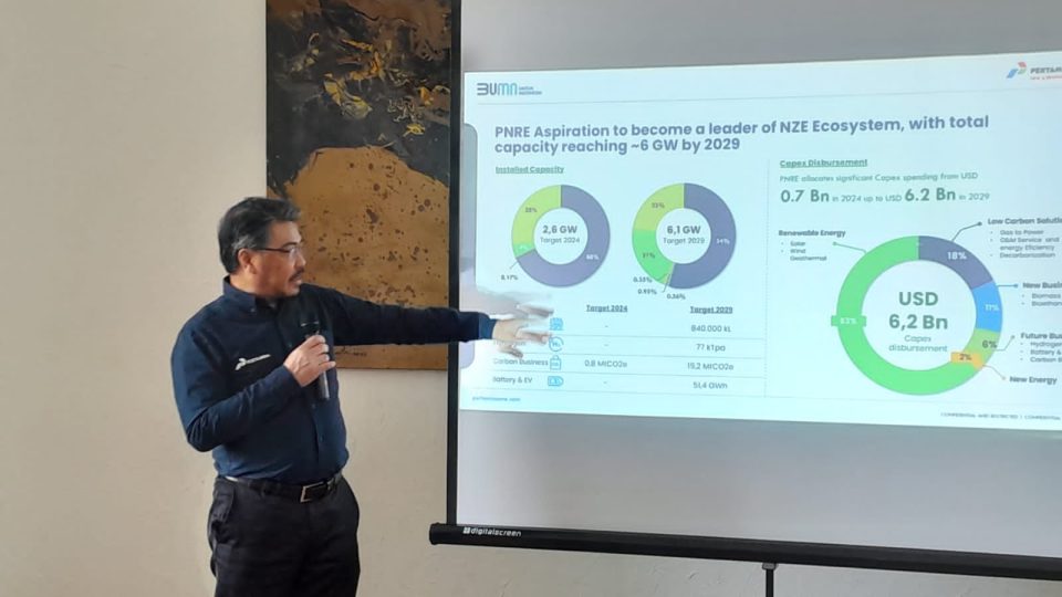 JAKARTA – Pertamina New & Renewable Energy (Pertamina NRE) menargetkan kapasitas terpasang pengembangan pembangkit Listrik berbasis energi bersih mencapai 6 gigawatts (GW) pada tahun 2029.