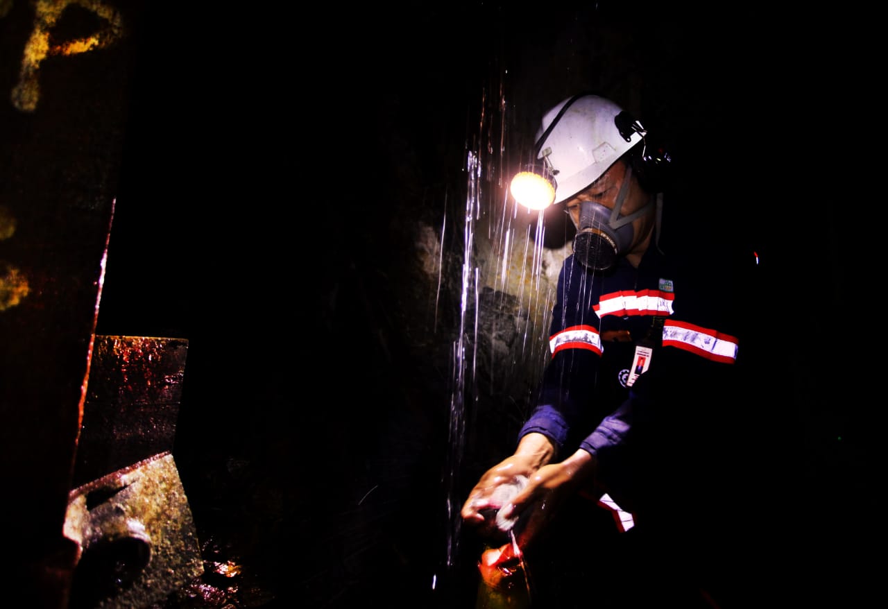 Pekerja PT Aneka Tambang Tbk di Tambang Pongkor, Bogor, Selasa (27/11).(Foto.Tatan Agus RST)