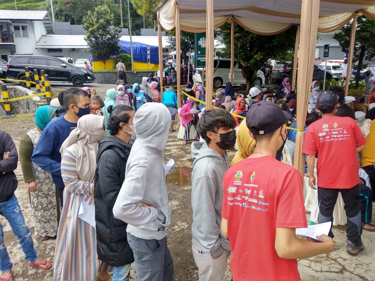 Masyarakat terlihat antusias mengikuti pelaksanaan vaksinasi COVID-19 di wilayah dataran tinggi Dieng, Wonosobo, Jawa Tengah yang didukung oleh PT GeoDipa Energi. (Foto/Dunia Energi/Rio Indrawan)